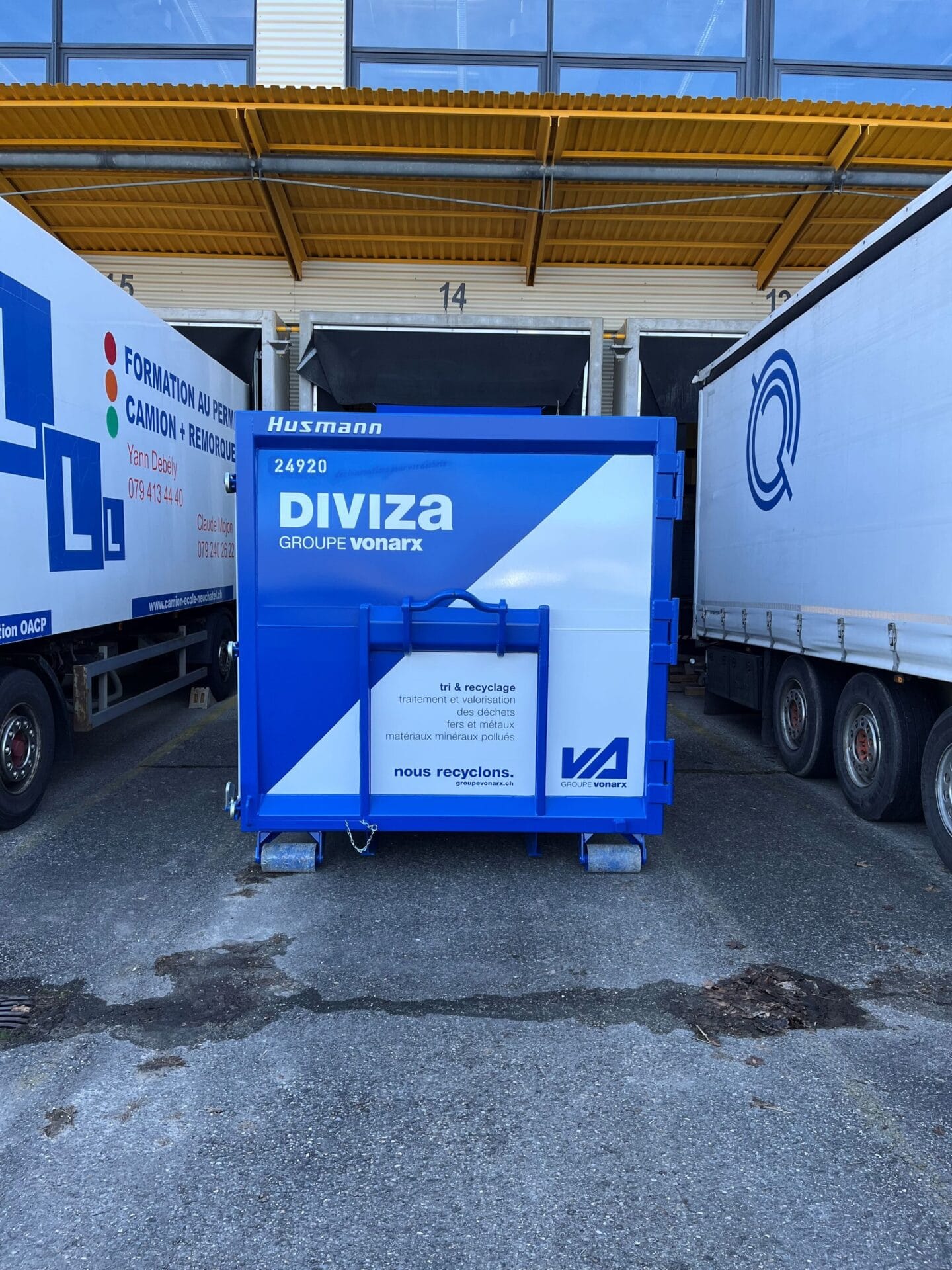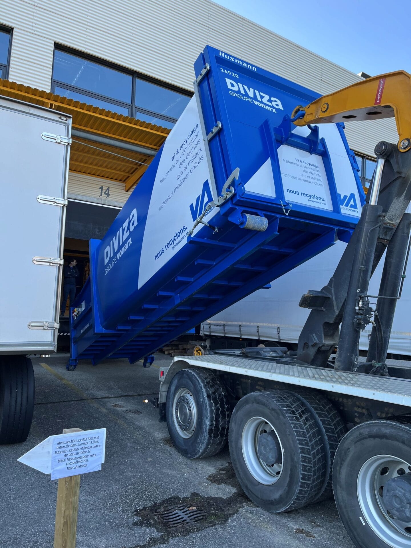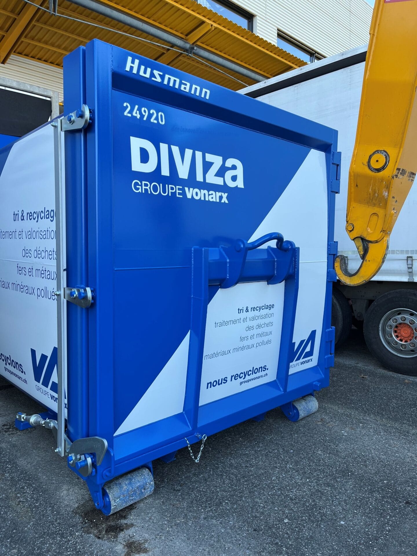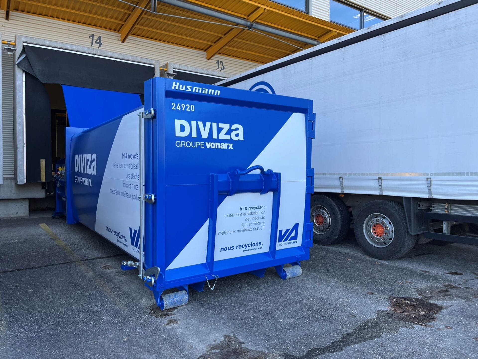 Die Firma DIVIZA aus der Groupe Von Arx vertraut bei ihren Kundinnen und Kunden auf die bewährten Husmann Presscontainer. Die hohe Flexibilität dieser Modelle überzeugt. Mit nur einem passend konfigurierten Presscontainer können alle Einsatzsituationen abgedeckt werden.
