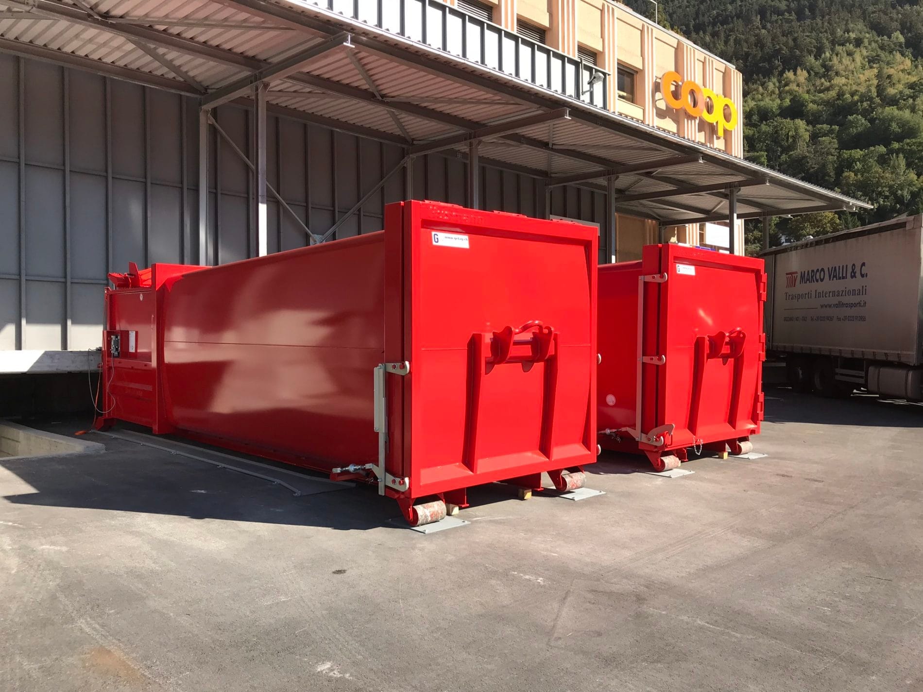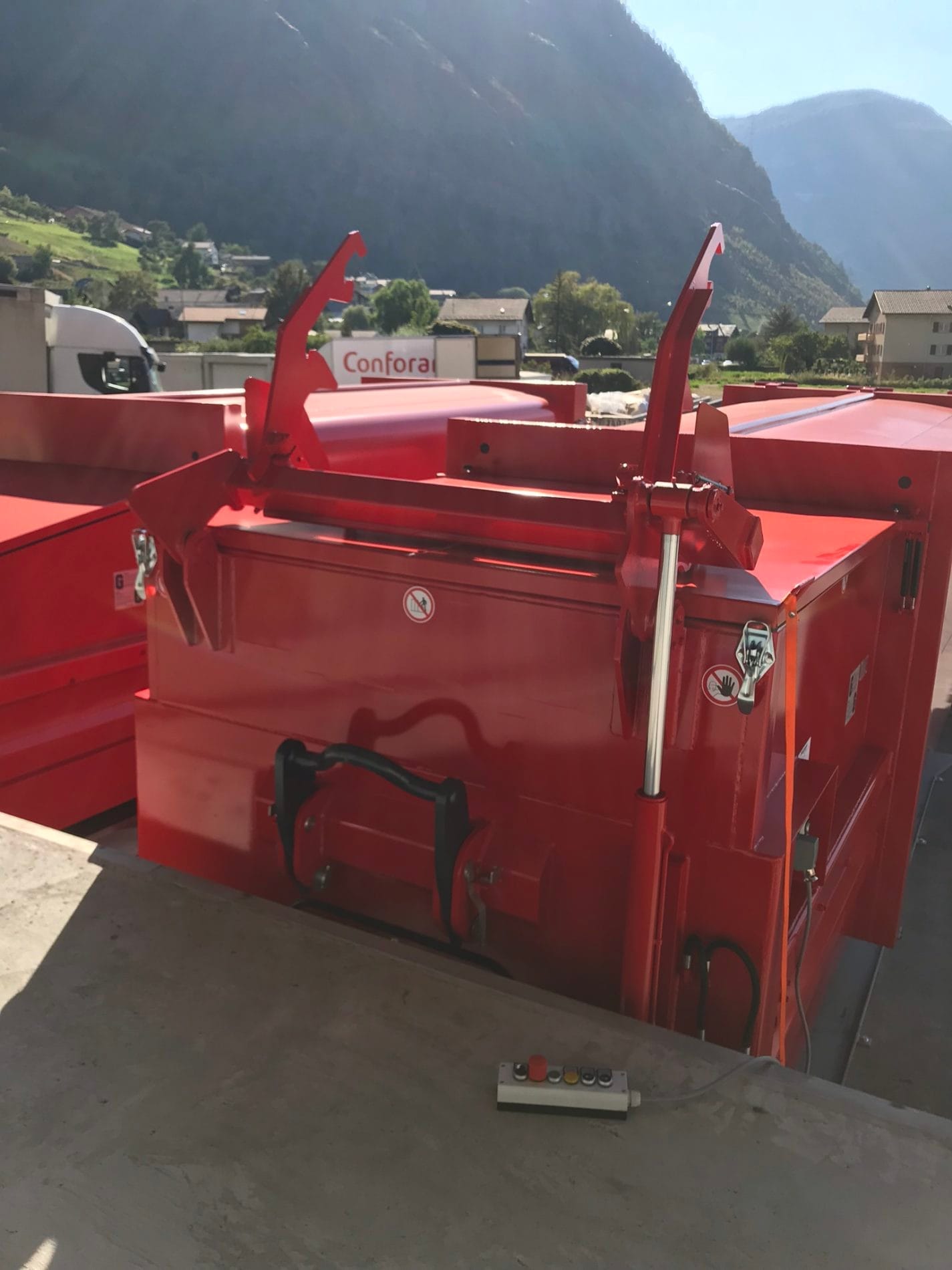 In Zusammenarbeit mit der Firma SRS Global Services, entschied sich Conforama am Standort in Visp zwei Husmann Selbspresscontainer 24m3 für Karton und KVA-Material zu stellen. Bei dieser Anlage musste gewährleistet sein, dass die Rampe frei zugänglich bleibt. Daher konnten die Hubkippvorrichtungen nicht wie üblich auf der Rampe platziert sondern mussten direkt am auf dem Presscontainer montiert werden. Mit dieser Lösung können die 800 lt Container mittels einer Fernbedienung in den Presscontainer geleert werden. Vielen Dank an SRS Global Services und Conforama für die tolle Zusammenarbeit und das uns entgegengebrachte Vertrauen. Das Ergebnis entspricht den Erwartungen!