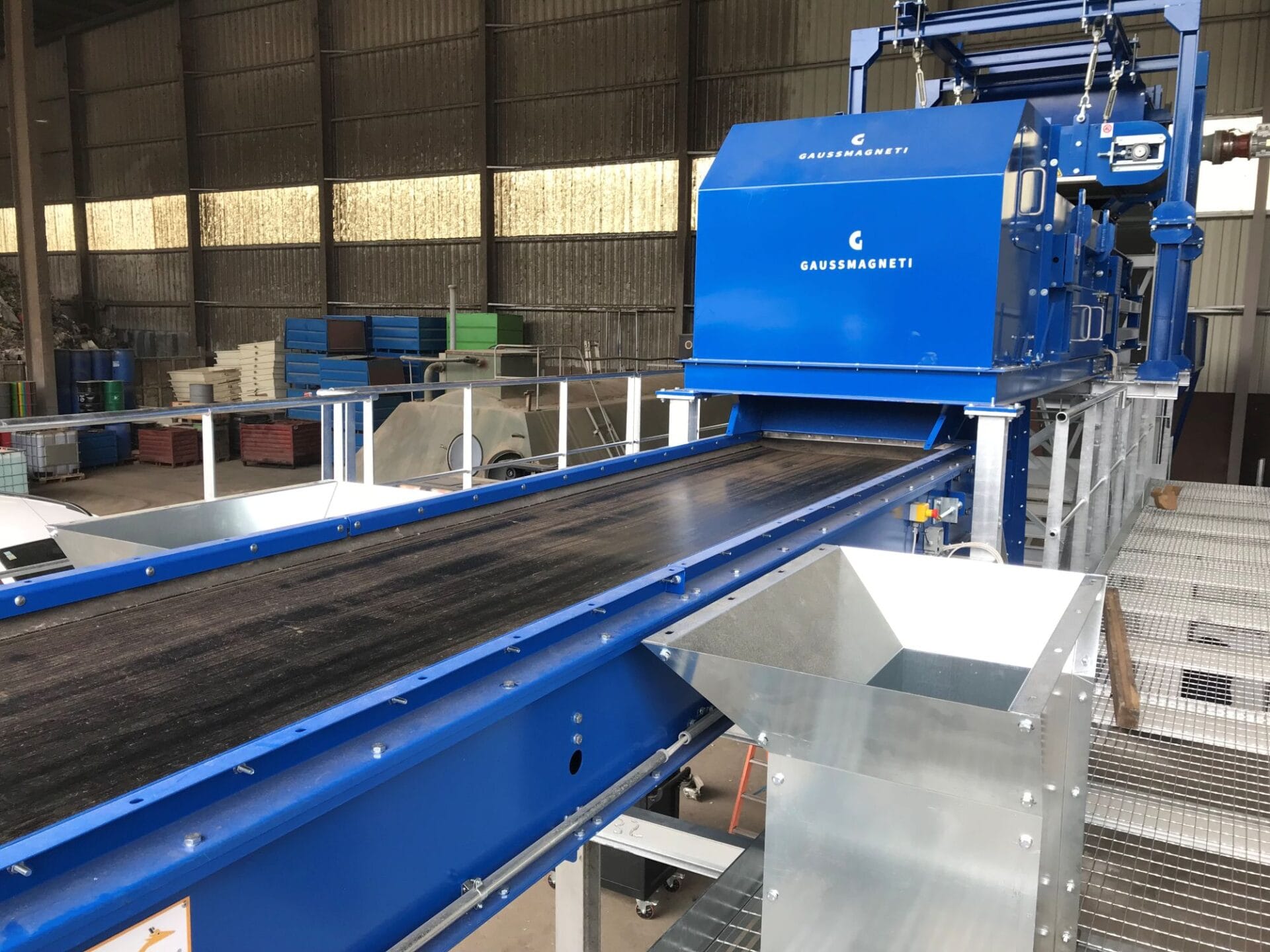 Um Aluminium vollständig von eisenhaltigen Materialien zu trennen, entstand mit unserem Lieferanten Gauss Magneti Srl eine Anlage, welche auf diese Materialströme abgestimmt ist. Eingesetzt wird ein Magnetabscheider, ein NE‑Abscheider sowie passende Fördertechnik.