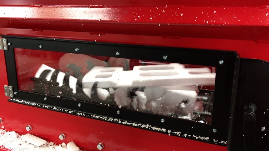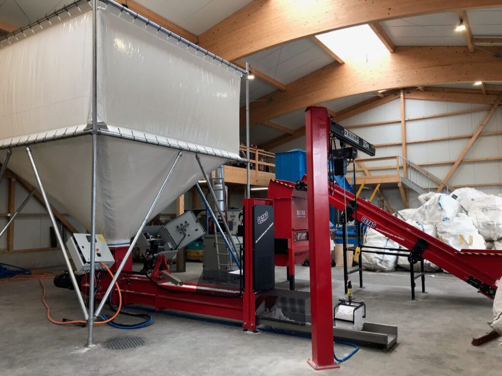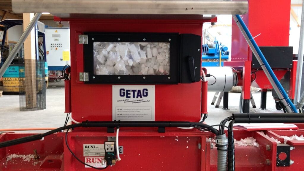 Um expandiertes Polystyrol (EPS) – umgangssprachlich auch «Styropor oder Sagex» genannt – zu verarbeiten, hat die Firma Henny Transports SA (Gruppe Retripa) in eine komplette Anlage, bestehend aus folgenden Komponenten - Förderband, Vorbrecher, Gebläse, Silo, Schneckenverdichter RUNI SK 370, automatischer Blockteiler (Guillotine), Säulenkran – investiert.