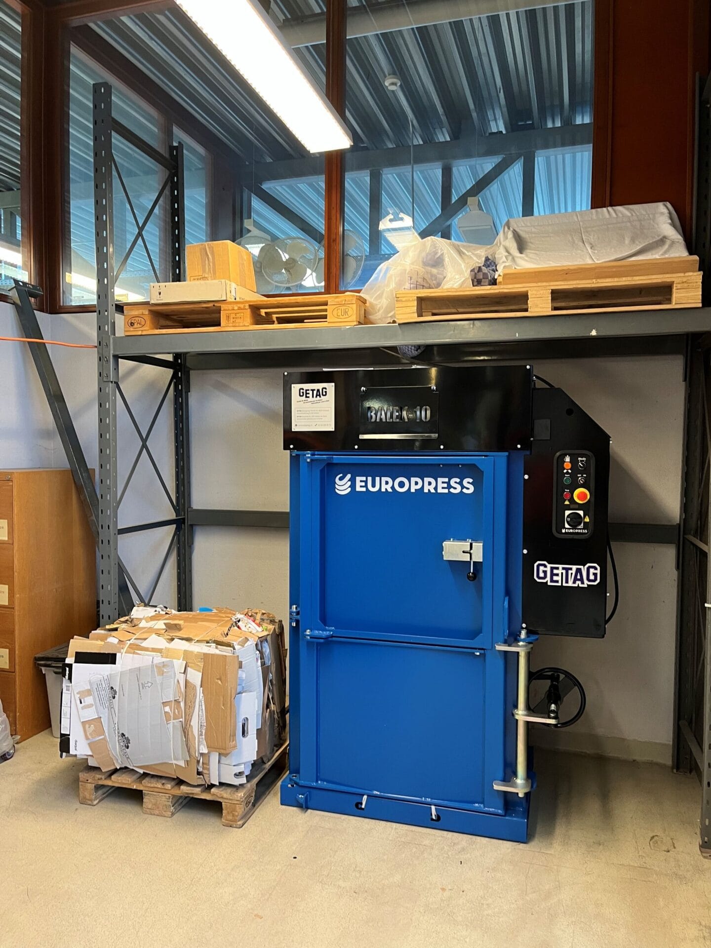 Diese Zeiten sind vorbei: Heute bleibt der Bereich dank der neuen EUROPRESS BALEX 10 Presse vollkommen sauber. Die Kartons werden direkt und ohne vorheriges Zerschneiden oder Falten in die Presse gegeben. Es entstehen kompakte Ballen mit einem Gewicht von 80 bis 110 kg.
