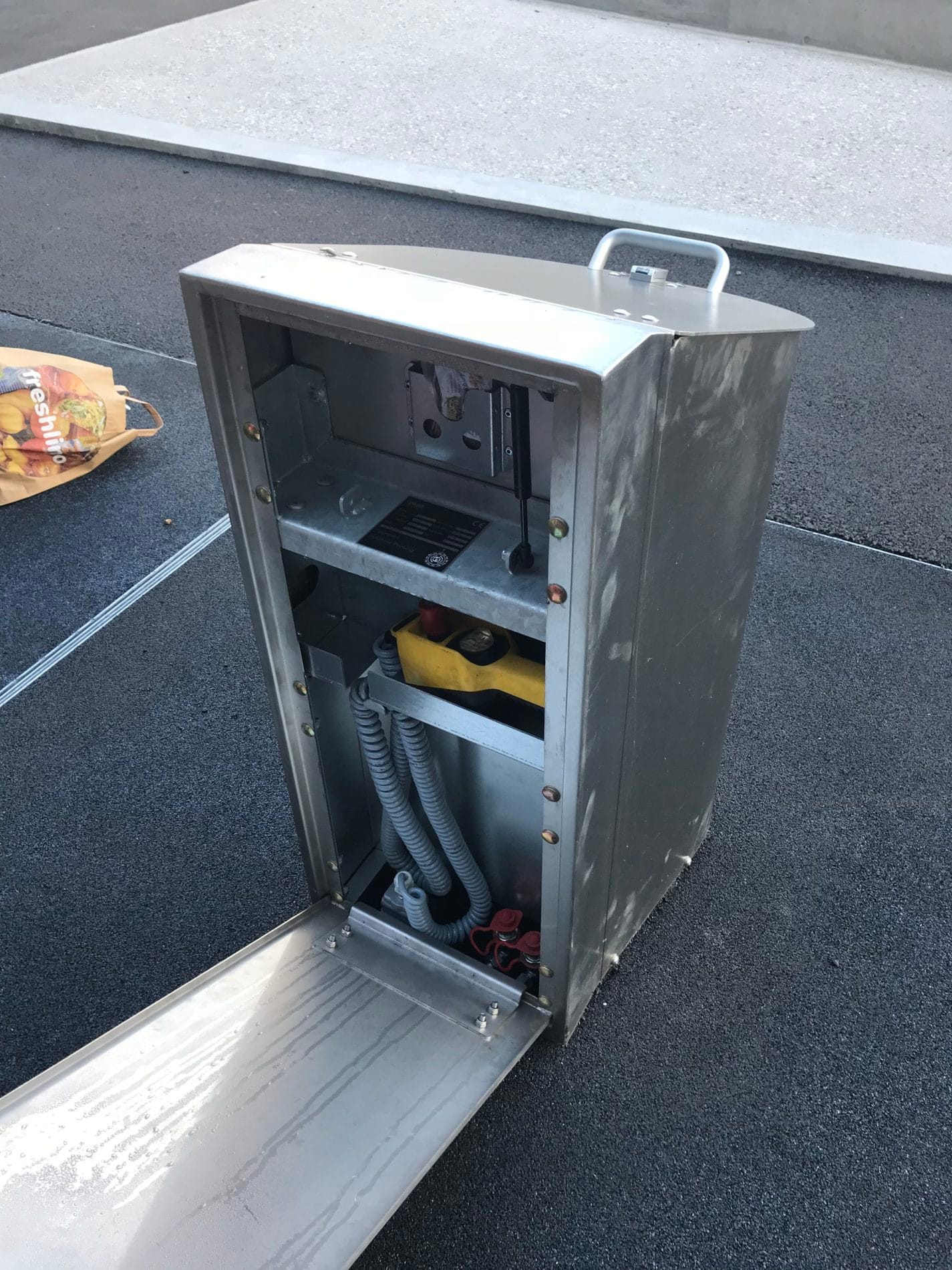 Ganz in der Nähe der Rheinfälle, der bekannten Schweizer Sehenswürdigkeit und beliebte Ausflugsdestination in Neuhausen am Rheinfall, durften wir im SIG-Areal für die Wohnüberbauung Grünerbaum eine Unterflursammelle für Kehricht und Grünabfälle realisieren. Neben den herkömmlichen Unterflurbehältern für Kehrichtabfälle, welche mit einem Sammelfahrzeug am Pilzaufnahmesystem herausgehoben und geleert werden, wurde ein weiterer Behälter für Grünabfälle mit Liftsystem installiert. Unter der Einwurfsäule für Grünabfälle, ist ein herkömmlicher 800 lt Rollcontainer als Auffangbehälter platziert. Der Hausmeister kann die Liftanlage über eine Steuerbirne hochfahren um den Grünabfallbehälter für die Abfuhr bereitzustellen. Die elegante Einwurfsäule „Pico“, passt gut in die modernisierte Überbauung.