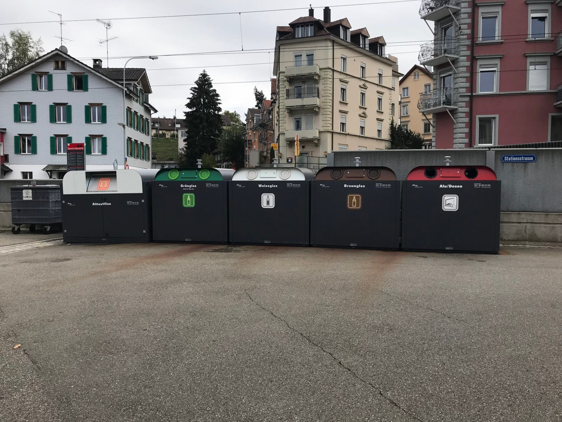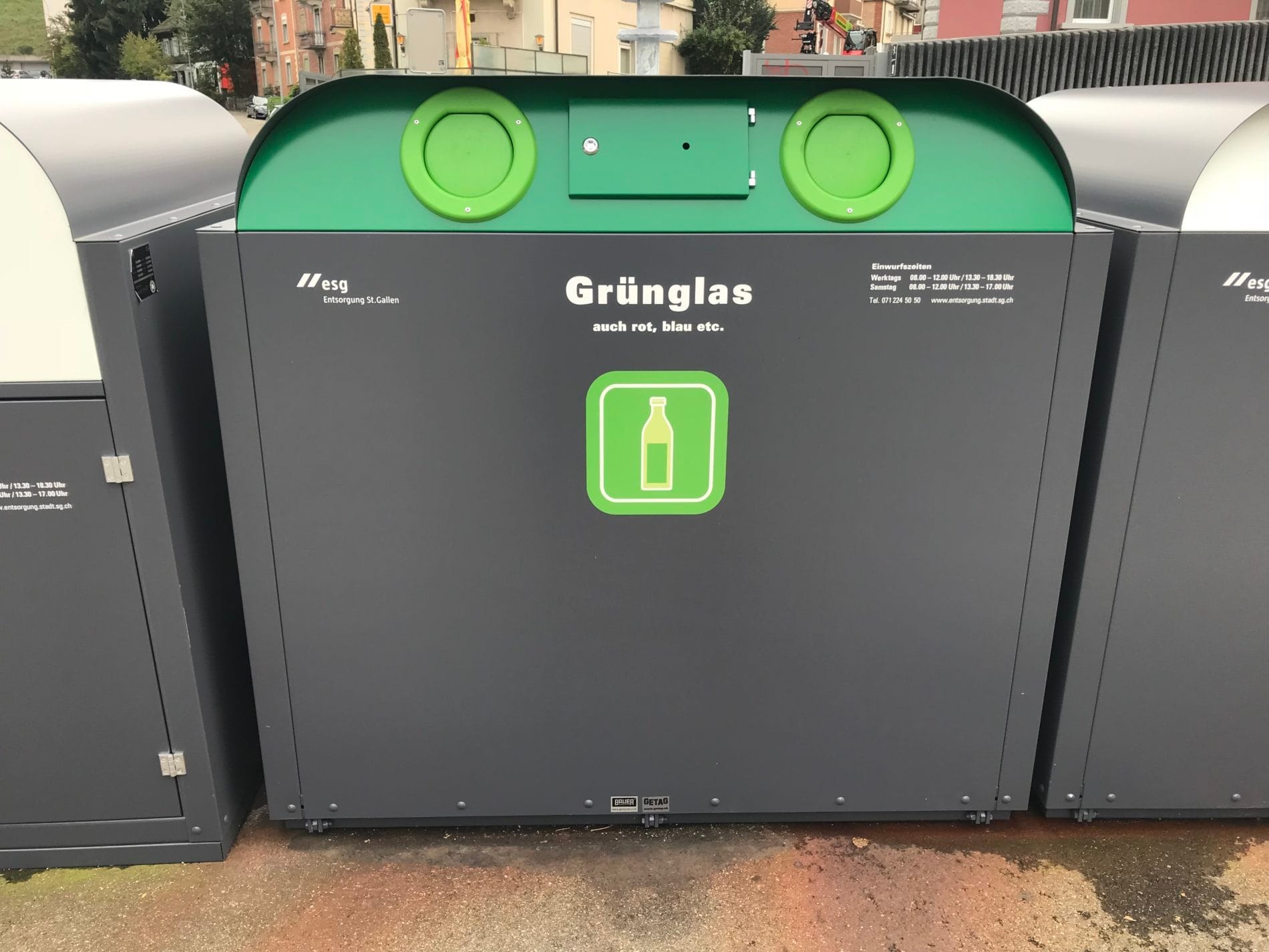 In der Stadt St. Gallen, wurde eine neue Wertstoffsammelstelle mit Oberflurbehältern gestellt. Die Behälter wurden mit einer Vorrichtung für die Montage von bestehenden Füllstandssensoren ausgestattet. Diese Anlage zeichnet sich, durch den einheitlichen Auftritt und der klaren Symbolbeschriftung auf den Behältern, als optisch sehr schöne Sammelstelle aus. Herzlichen Dank der Entsorgung St. Gallen für die schöne Zusammenarbeit.